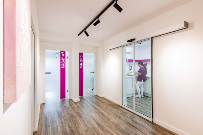 Im freundlichen und hellen Design stellt unsere Praxis den technischen Stand der Dinge dar ohne auf freundliche Atmosphäre verzichten zu müssen. 5 Behandlungsstühle ermöglichen einen reibungslosen Ablauf und garantieren unsere hohe Qualität in punkto Hygiene und Zuverlässigkeit.